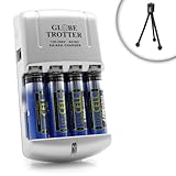 Globe Trotter Battery Charger for AA & AAA Batteries with (4) High Capacity truCELL AA Rechargable Ni-MH 2700 series batteries for Canon SX130 / SX120 / SX20 / SX30 Camera models and MORE! **Includes mini Tripod- Complete Charging in 2 Hours and automatically Senses bettery level - Two Way microchips ensure a complete charge and automatic cut-off when full